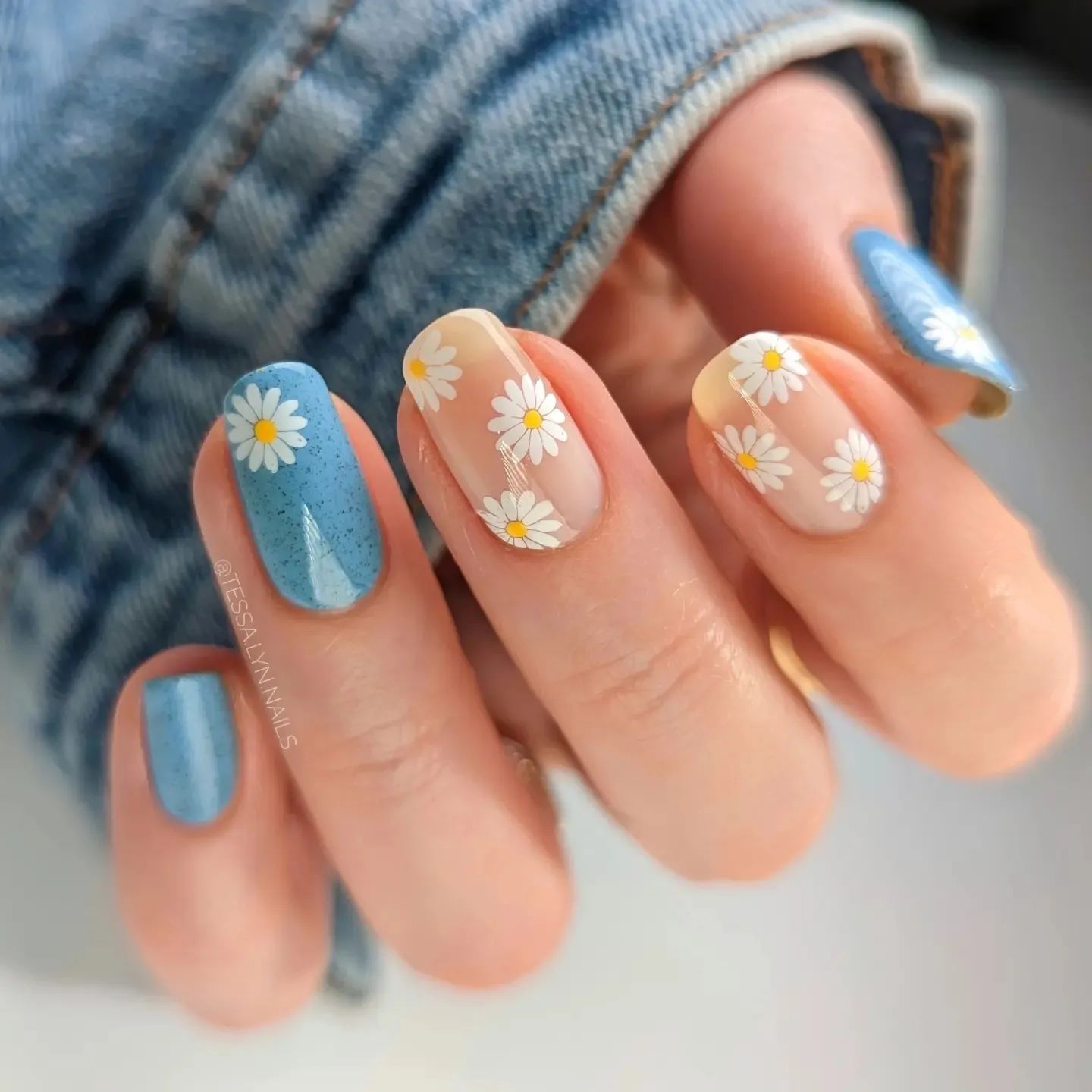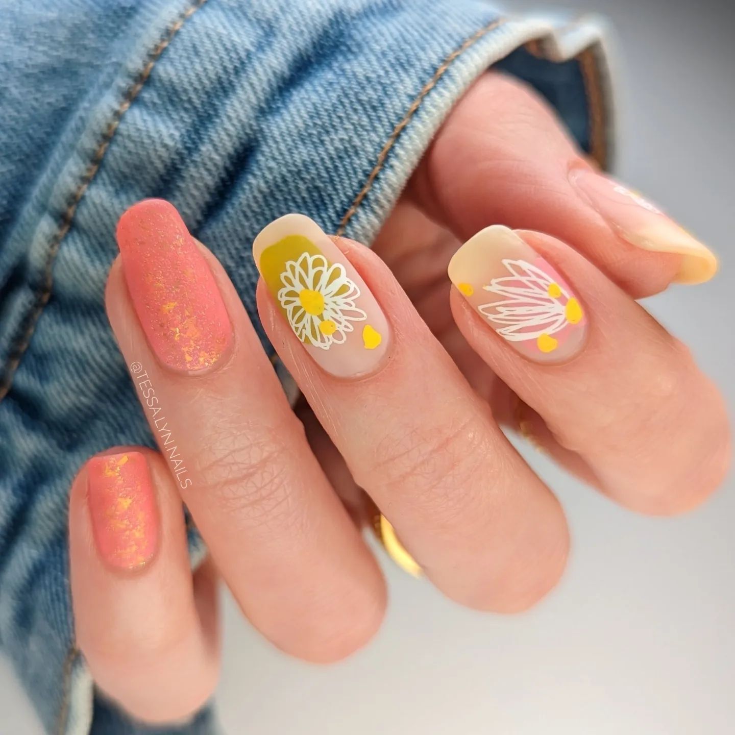 Маникюр с ромашками и другими цветами
