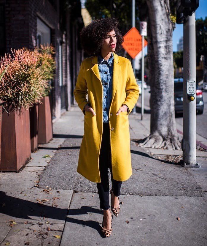 Классическое пальто в британском стиле тоже может очень неплохо смотреться в нежно-желтом цвете. В сочетании со светлым платьем и классическими лодочками оно создаст нежный и в то же время достаточно строгий образ.