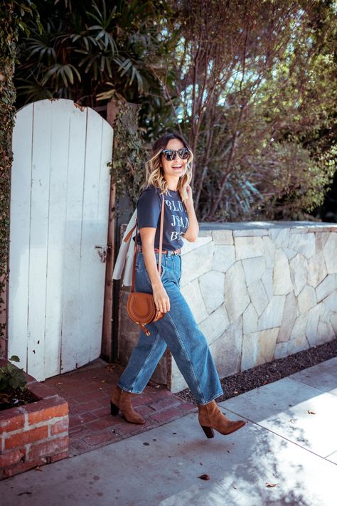 В моду неожиданно вернулись широкие прямые брюки. Их можно носить с различными футболками, рубашками, блузами. Но важно помнить, что с такими джинсами верх лучше заправлять, иначе наряд получится бесформенным.
