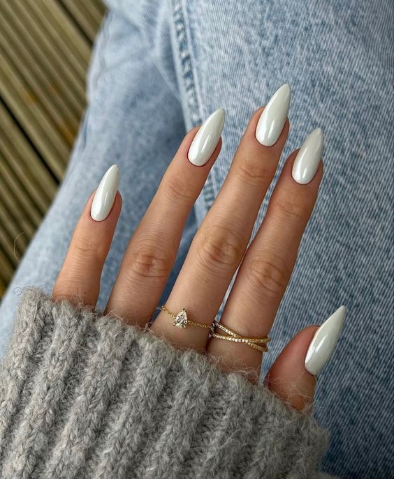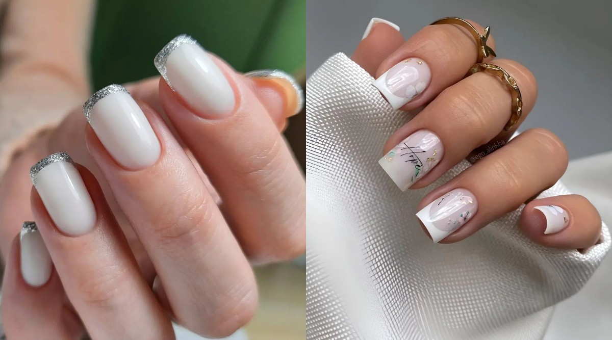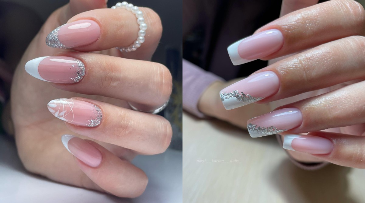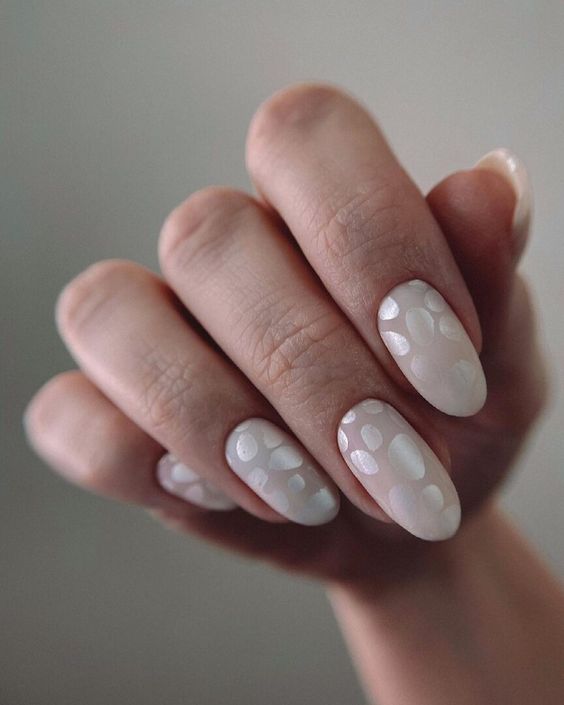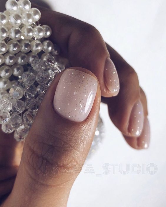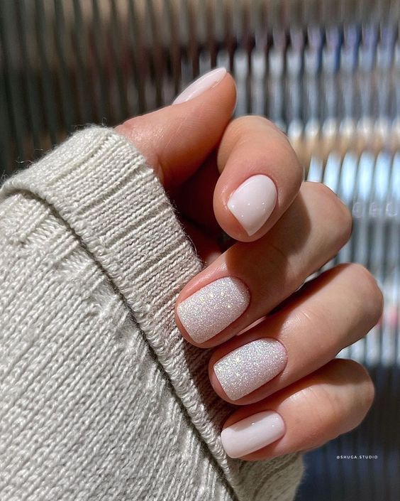 А на коротких красиво будет смотреться полупрозрачное белое покрытие с шиммерными блестками.