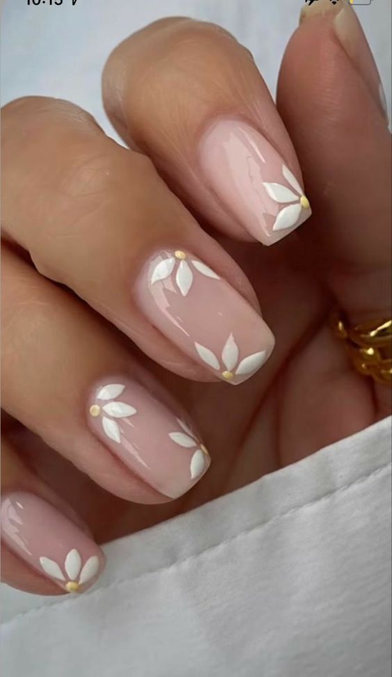Также для образа невесты подойдет нежный маникюр с ромашками. Как известно, ромашки символизируют чистоту, невинность, любовь, верность, милую простоту и нежность.