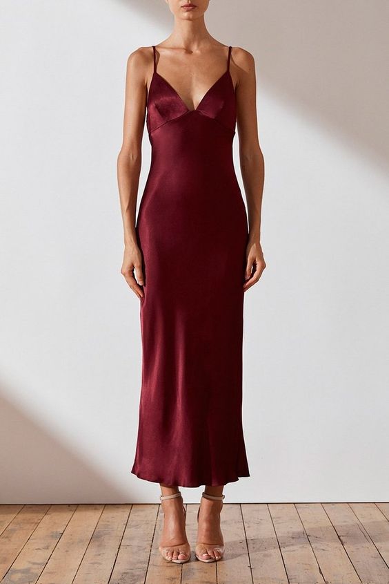 Если вы хотите создать роскошный образ, дополните платье-комбинацию шелковой или атласной накидкой из ткани такого же оттенка, что и наряд. Завершат лук туфли-лодочки и кошелек-клатч.