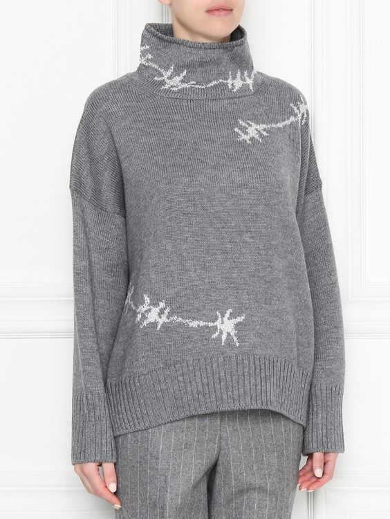 Также можно составить total look в сером – для этого выберите брюки или джинсы и свитер. Образ можно разбавить контрастными аксессуарами и обувью.