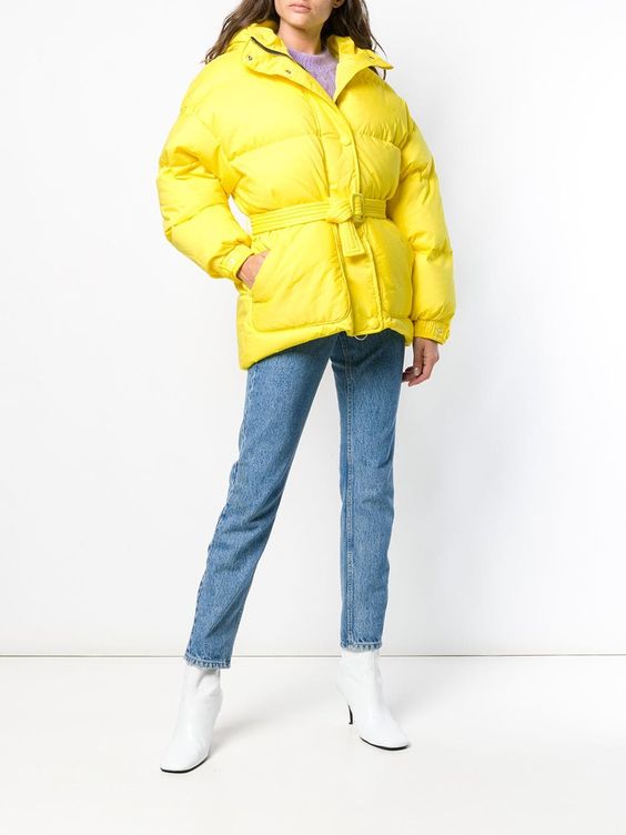 Если вы не любите сочетание серого и желтого, выберите из них один цвет. Например, купите ярко-желтый пуховик или дутую куртку. Носить его можно как с деловыми брюками, так и с модными джинсами.