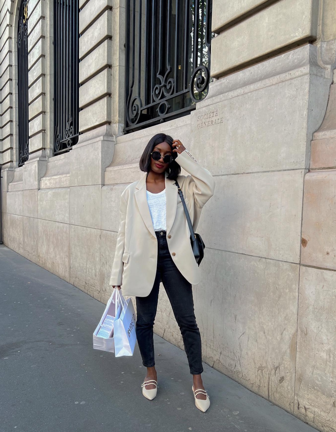 1. С пиджаком оверсайз и балетками