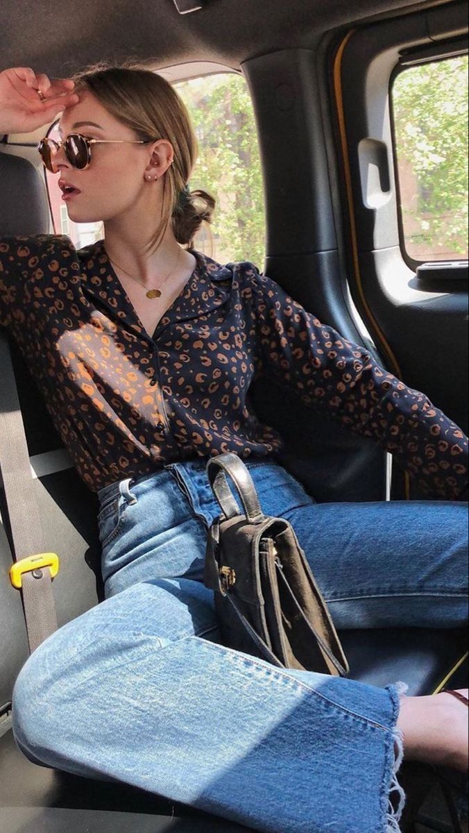 Широкие джинсы – вещь универсальная. Поэтому если хочется сменить спортивный стиль на что-то более женственное и романтичное, доставайте из шкафа блузу с ярким принтом. Добавьте несколько аксессуаров и сделайте легкую прическу – образ для свидания или встречи с друзьями готов.