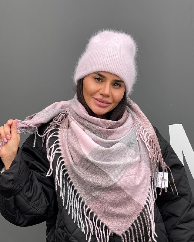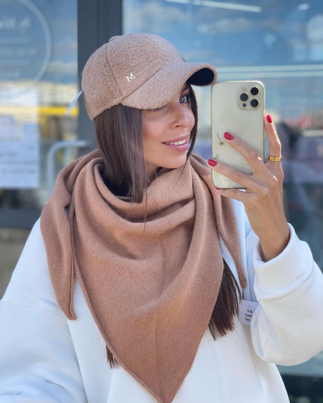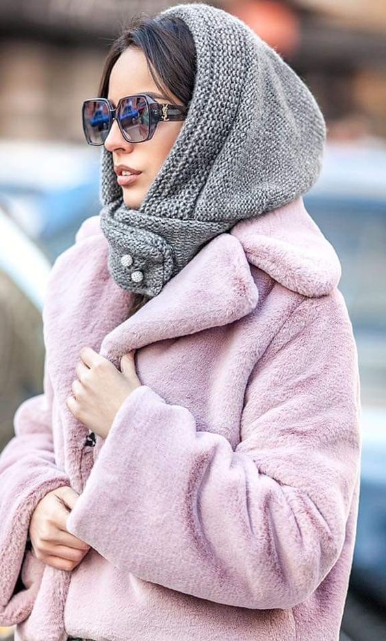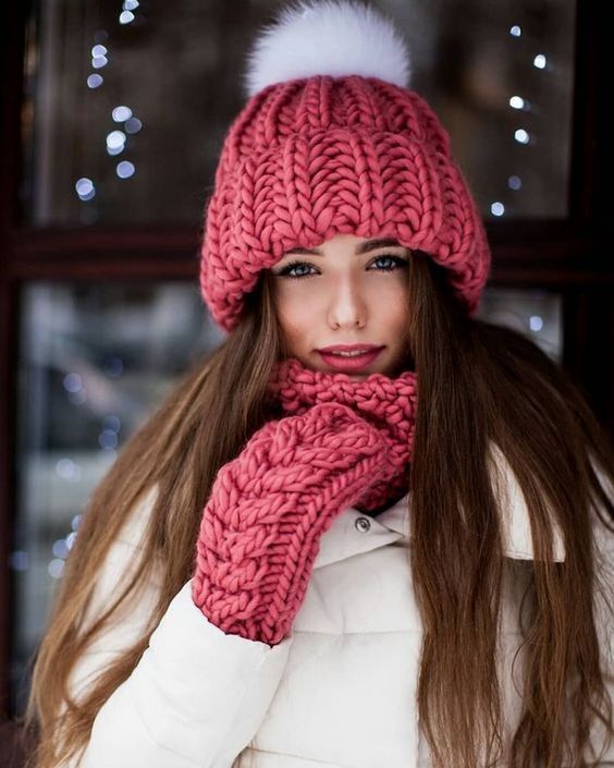 Универсальный вариант на холодную осень и зиму – это вязаная шапка. Выбирайте модели, в составе которых есть шерсть, мохер, ангора. Носить их можно как с куртками, так и с пальто. Дополните образ теплым палантином или объемным шарфом.