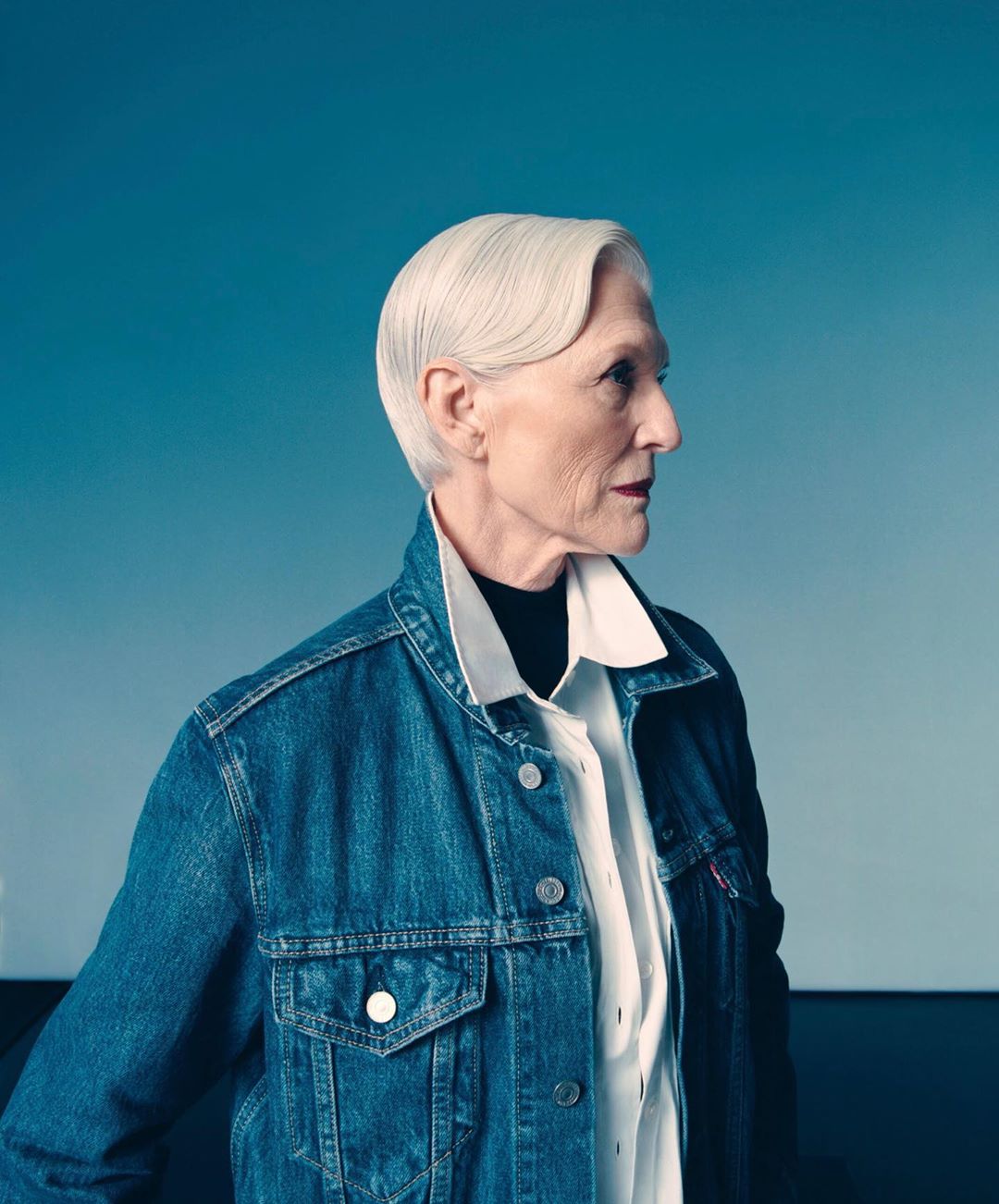 Результатом съемки украинка поделилась в своем Instagram. Несколько снимков опубликовала и 71-летняя модель. На снимках Мэй демонстрирует образы Levi"s и Saint Lauren.
