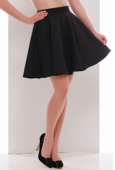 Юбка-солнце отлично подойдет молодым девушкам. Ее можно надеть как с деловой блузой, так и с какой-то неформальной футболкой. Такой лук будет интересно смотреться с обувью на грубой платформе и яркой помадой.