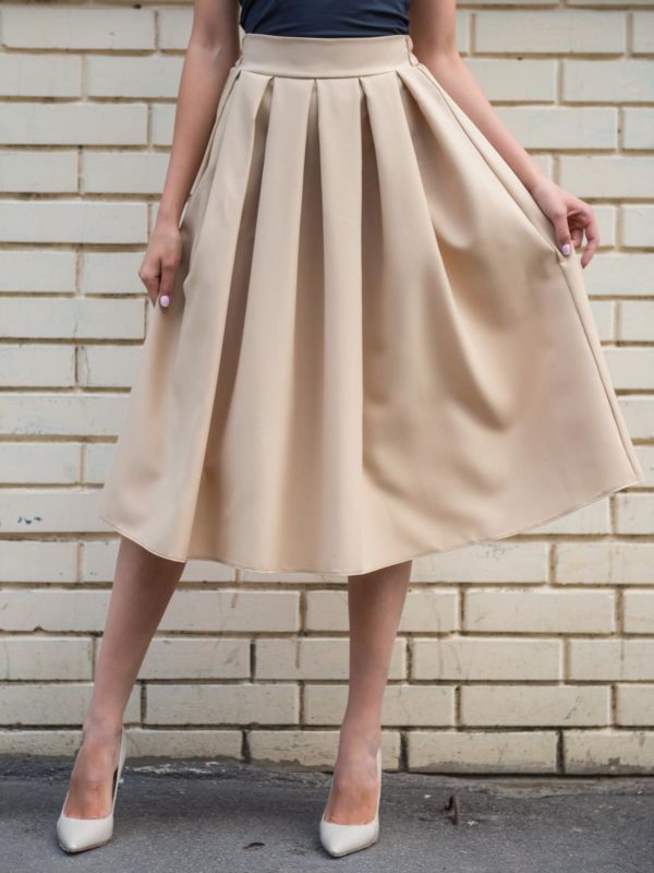 Юбка в складку может эффектно дополнить образ настоящей леди. Надеть такой элемент одежды можно с беретом, строгим гольфом и аккуратными украшениями.