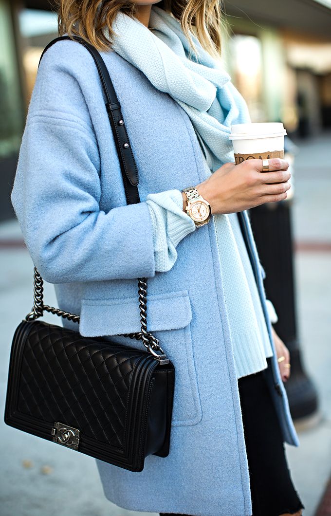 Голубой цвет снова стал очень актуальным в этом сезоне, особенно это касается небесно-голубого, мятного и оттенка Baby blue. Такие цвета хорошо сочетаются с белым, черным, нюдом, пудровым розовым и сиреневым.