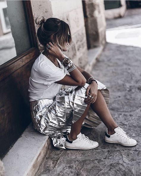 Что важно знать перед тем, как надевать кроссовки с юбкой? Во-первых, нужны правильные кроссовки. Кеды, кроссовки для бега и тренировок и прочие подобные модели не подойдут. Для стильного эффекта годятся только так называемые "модельные" кроссовки. То есть те, которые предназначены не для занятий спортом, а для выхода на улицу.