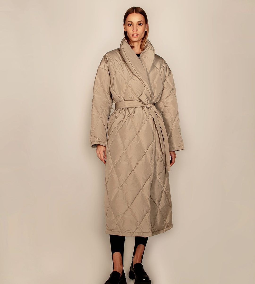Также можно выбрать удлиненный вариант куртки с поясом, которые еще называют пальто-пуховик. Надевайте леггинсы со штрипками и лоферы, а зимой замените их на грубые ботинки на тракторной подошве.