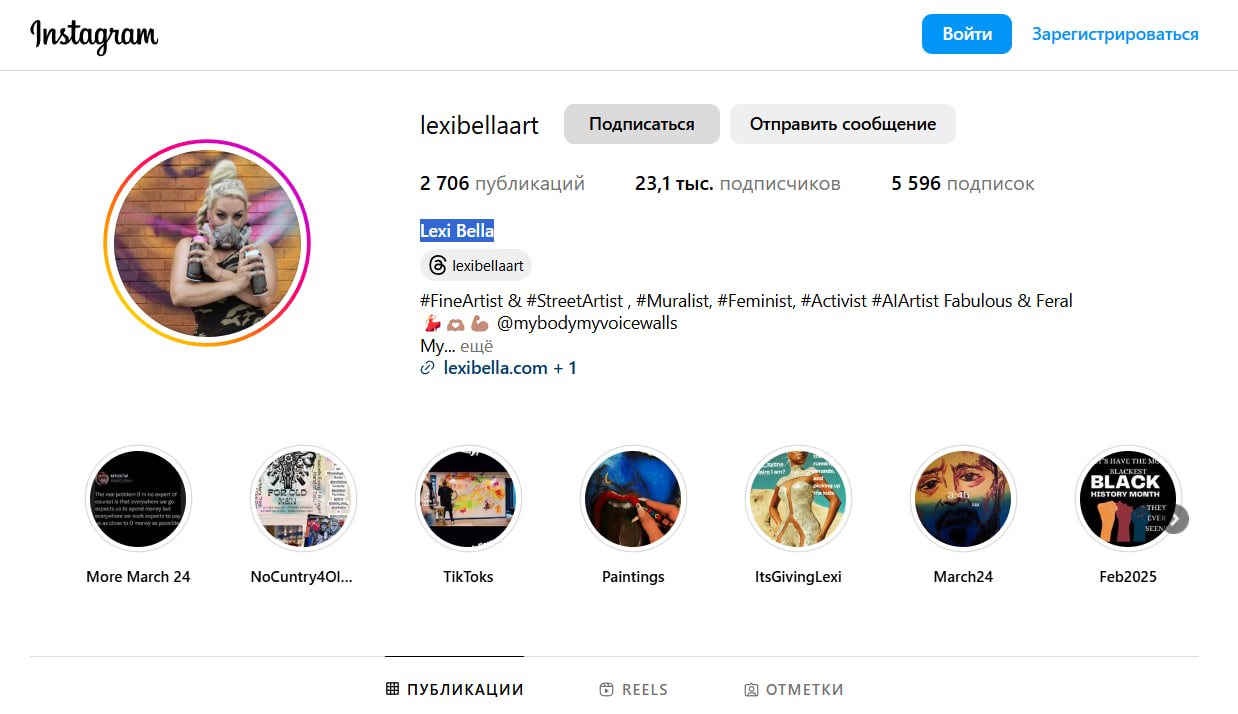 Автор мурала с Зеленским, судя по всему, эта американская уличная художница. В Instagram она подписана Lexi Bella. В ее профиле можно увидеть немало уличных картин.