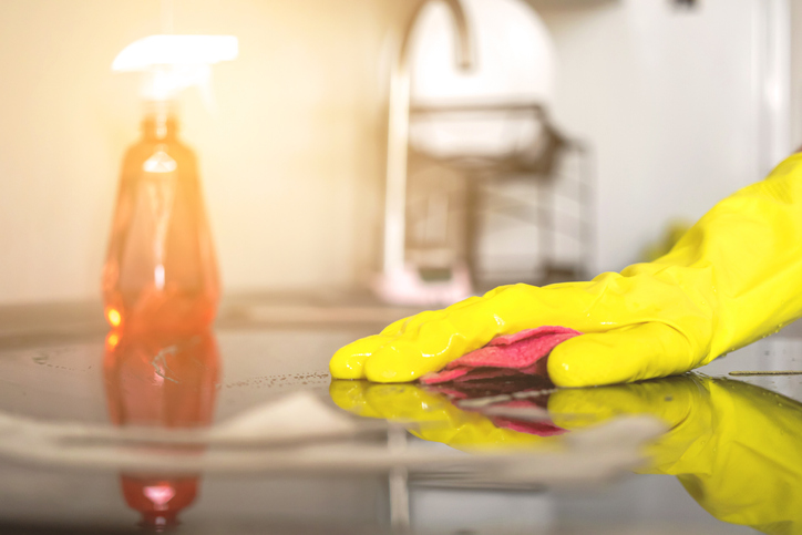 Для второго способа понадобится уксус и сода. Сначала нанесите на поверхность уксус, затем добавляйте второй ингредиент. После смешивания двух компонентов появится пена, а когда реакция завершится, подождите еще несколько минут. Далее возьмите мочалку и легкими движениями очистите поверхность от жира.