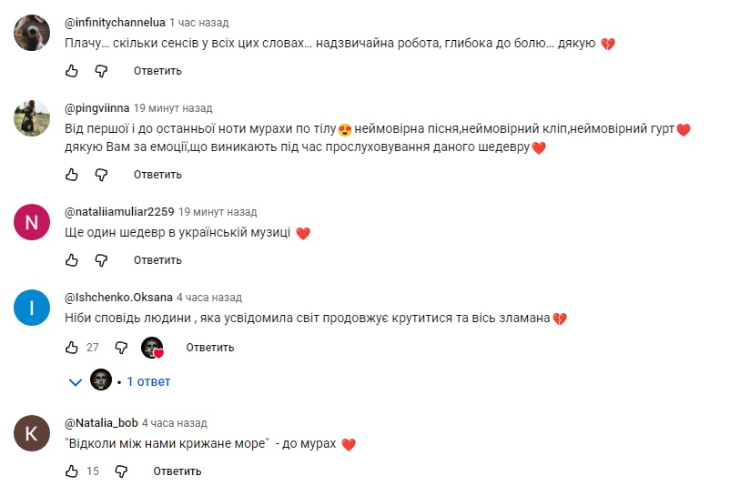 Реакция подписчиков предсказуемая. Некоторые в комментариях не скрывали своего разочарования из-за того, что Тарас и Елена уже не вместе. Клип умилил людей, уставших от войны и неопределенности.