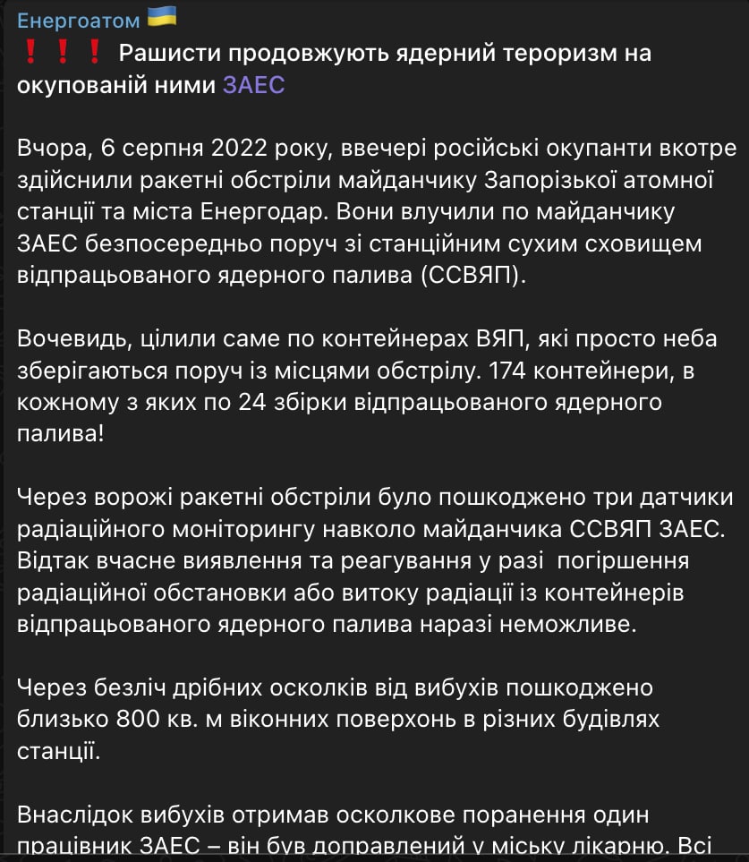 13:42 "Энергоатом" сообщил об обстреле в субботу вечером Запорожской АЭС и города Энергодар.