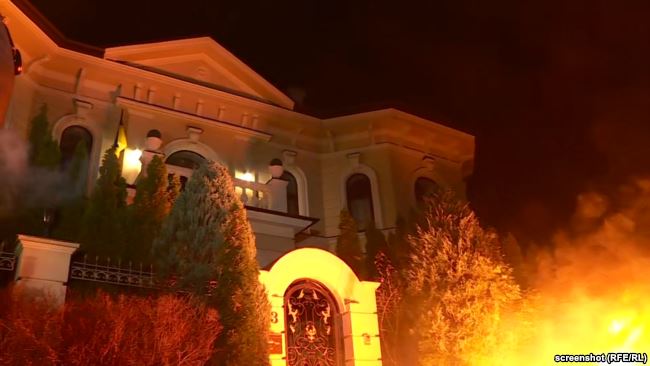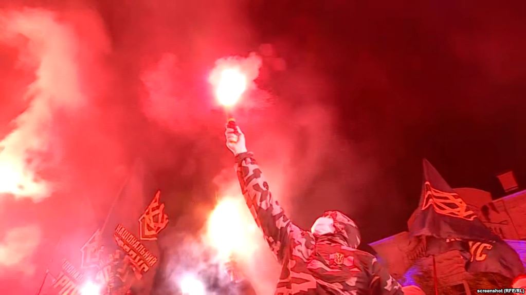 Организаторы сначала заявили, что акция "Разворовываешь оборонку Украины - отрубим руки" будет мирной, но вскоре представители националистических организаций начали применять пиротехнику, в окна здания начали швырять камни, а перед входом во двор подожгли искусственные деньги, залитые краской.