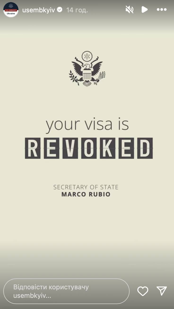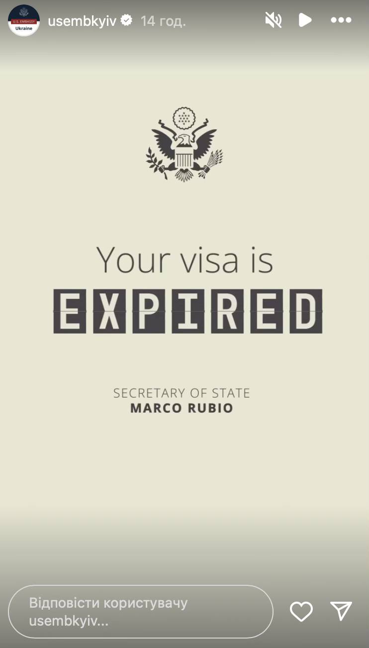 "Посещение Америки не является правом. Это привилегия для уважающих наши законы и ценности", - приводит посольство США в Украине цитату государственного секретаря США Марко Рубио.