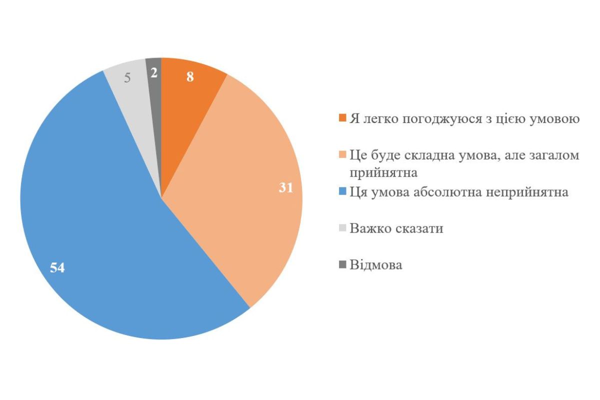Основными причинами отказа от такого условия среди тех, кто считает его неприемлемым, является убеждение, что Россия не остановится и продолжит войну дальше (35%).