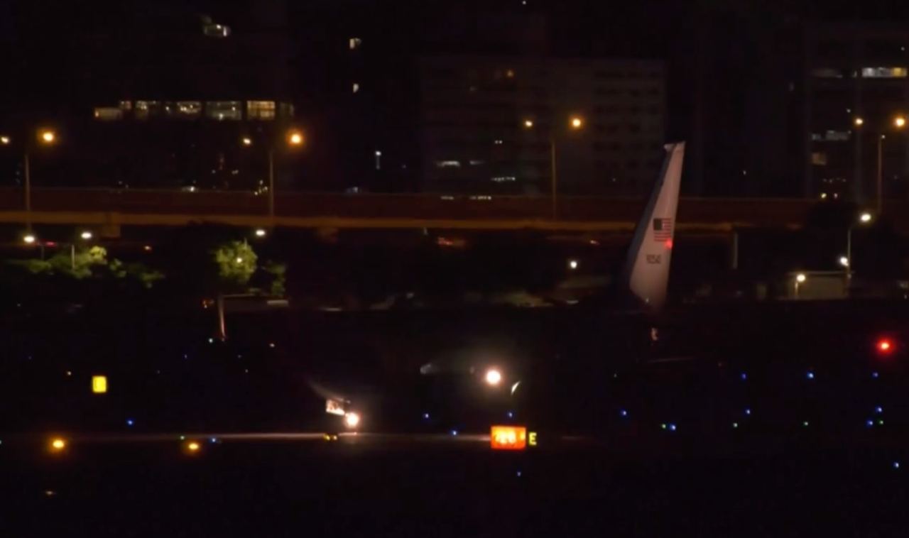 Тем временем в Сети появились первые фото и видео кадры приземления самолета с американским политиком.