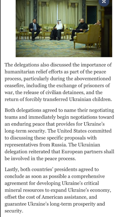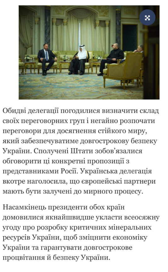 "Но нужна максимально возможная прозрачность и точность информации (по крайней мере публичных месседжей) для украинского общества. Следует быть внимательнее с публичными сообщениями. Например, чтобы тексты на английском и украинском языке "Совместного заявления по итогам встречи делегаций Украины и США в Джидде" совпадали. А так - существенная договоренность компенсировать стоимость американской помощи ("offset the cost of American assistance"), которая содержится в американском тексте, почему-то скрытая (ну есть просто снятая) в украинском. Надеюсь, что украинская редакция более точна...", - сказал экспосол.