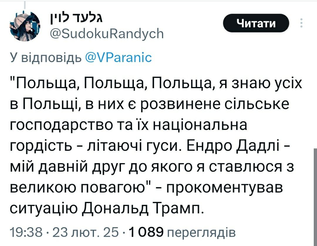 "Еще больше слов иногда говорит молчание. Ноль постов написал Дуда в соцсети Х по результатам встречи с Трампом. Пустота и пустота. Такого никогда не было раньше, президент всегда отчитывается обо всех публичных мероприятиях, а тем более такого уровня. Выглядит так, как будто гордый польский пан обиделся. Сейчас Зеленский может позвонить ему сказать: "Да ну, Анджейка, надо прекратить эти эмоции и вести спокойное и конструктивное сотрудничество с Дональдом Трампом, потому что никто Польшу кроме США не защитит"".