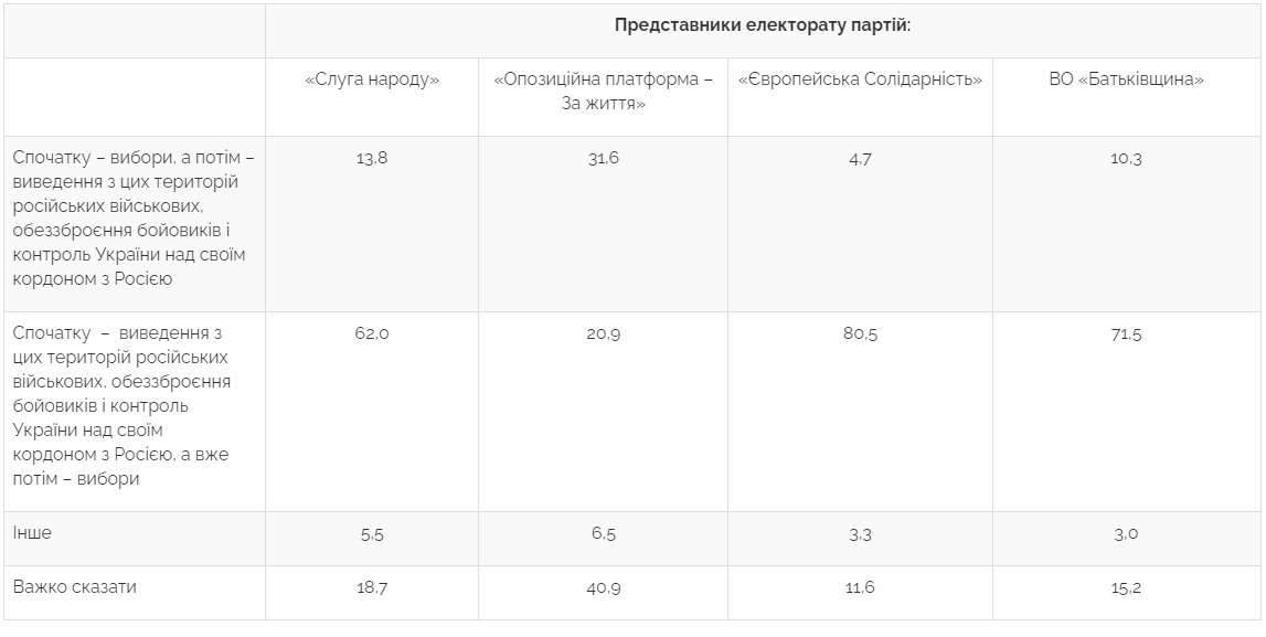 60% украинцев считают, что для выборов на оккупированных территорий Донецкой и Луганской областей должны быть выведены российские войска и установлен контроль Украины.