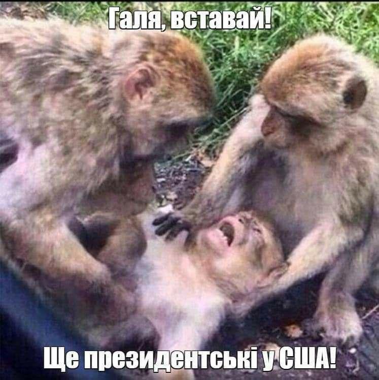 Одна из них представляет собой вариацию на известный мем. "Галя, вставай, еще президентские в США!", - написано на картинке.