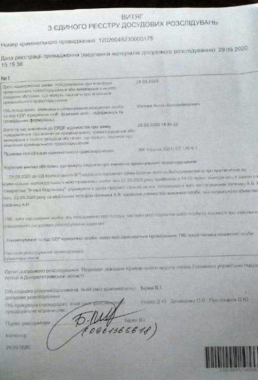 Полиция открыла уголовное производство по факту угроз семье кандидата в мэры Кривого Рога от партии "Слуга народа" Дмитрия Шевчика.
