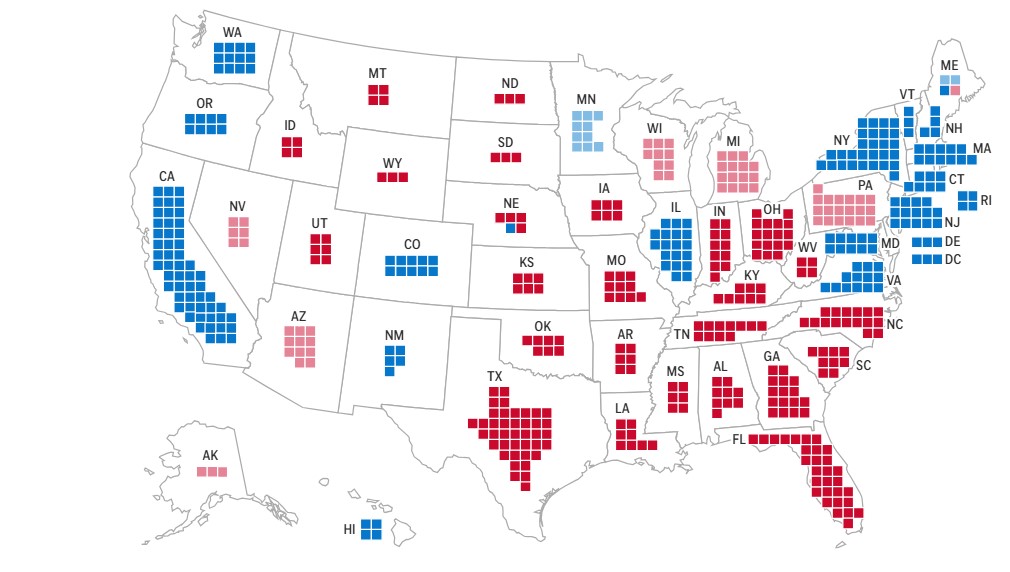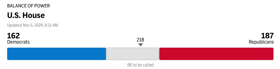 Подсчет голосов по представительству в Палате представителей продолжается. Сейчас у республиканцев 187 голоса, у демократов – 162.