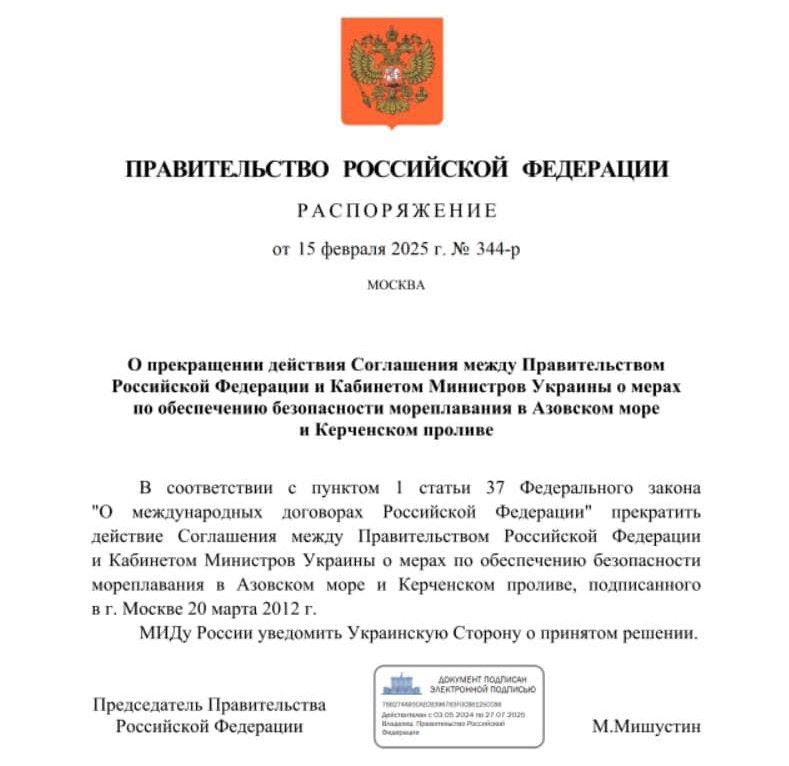 "Азовское море превращается окончательно во внутренние воды рф по версии рф. Потому что за всю Независимость мы не делимитировали, не демаркировали границу на Азовском море ", - отметила она, поделившись текстом распоряжения, принятого 15 февраля российским правительством.