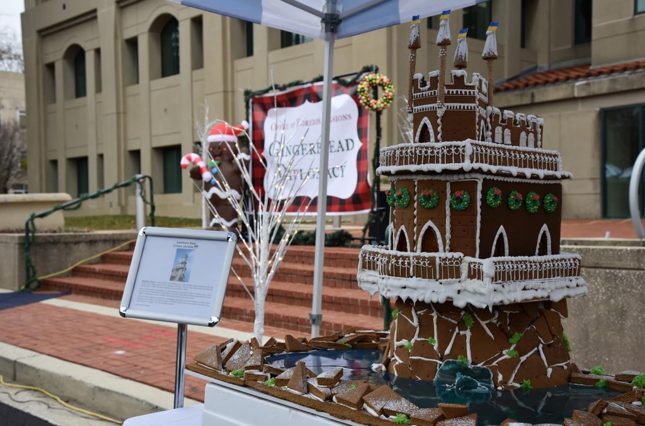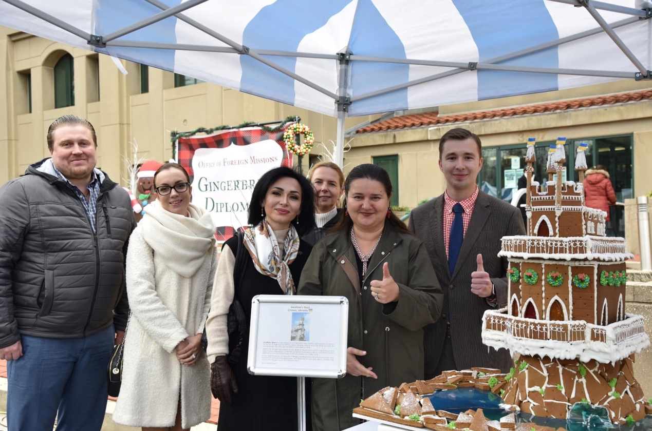 Украинские дипломаты в США победили в конкурсе имбирных пряников от Государственного департамента США. Они создали большое имбирное печенье в форме символа Крыма – Ласточкиного гнезда, находящегося на южном берегу ныне оккупированного Россией полуострова, в поселке Гаспра.