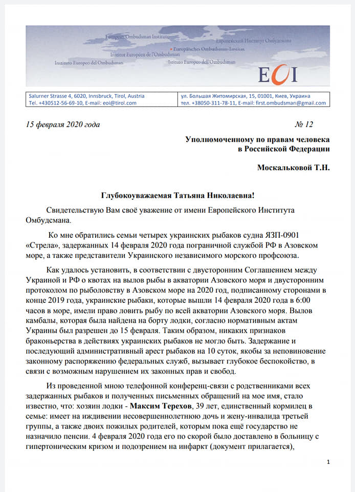 Украинские рыбаки (Сергей Гога, Алексей Иванов, Василий Тюркеджи и Максим Терехов) были задержаны российскими пограничниками в Азовском море и незаконно удерживались в оккупированном Крыму.