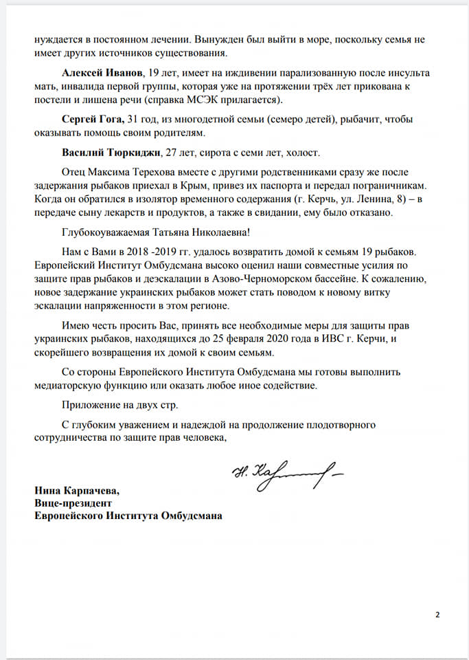Также экс-нардеп Надежда Савченко опубликовала письмо к российскому омбудсмену Татьяне Москальковой касательно судьбы моряков.