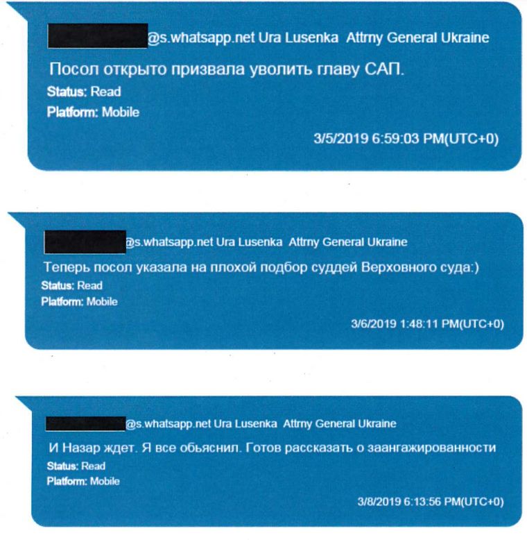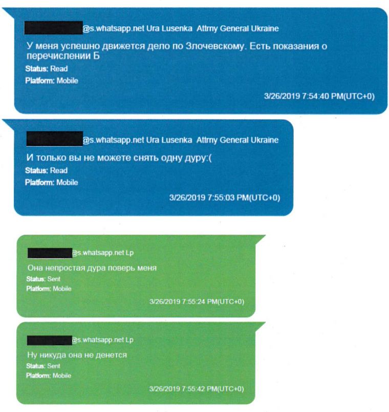 Среди прочего, Луценко в своих сообщениях сетовал на тогдашнего посла США в Украине Мари Йованович. В свою очередь Парнас уверял Луценко, что в США его считают "настоящим героем Украины".