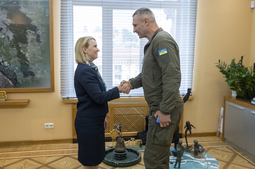 "Встретился в столичной мэрии с Чрезвычайным и Полномочным Послом США в Украине Бриджит Бринк и представителями посольства. Обсудили ситуацию в Киеве – экономическую и социальную, а также - вопросы подготовки столицы к отопительному сезону. Говорили о дальнейшем сотрудничестве в сфере безопасности, обновлении энергетической инфраструктуры, о вызовах, которые сегодня стоят перед местным самоуправлением", – сообщил Виталий Кличко.