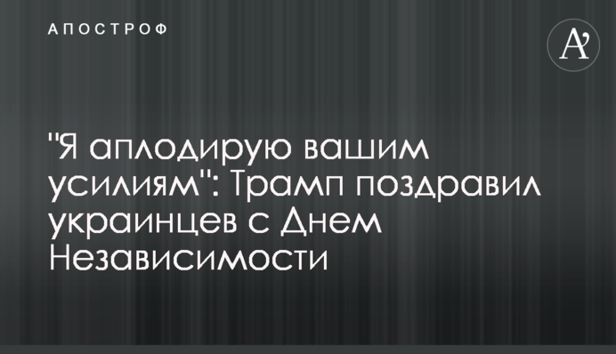 "Свободная и независимая Украина движется вперед благодаря своей демократии, процветает. США настойчиво поддерживают реформы в Украине, мы поддерживаем всех украинцев - в правительстве, бизнесе или в гражданском обществе, - чьи усилия способствуют верховенству закона, экономическому росту, привлекают иностранные инвестиции и ускоряют евроатлантическую интеграцию Украины", - подчеркнул Дональд Трамп.