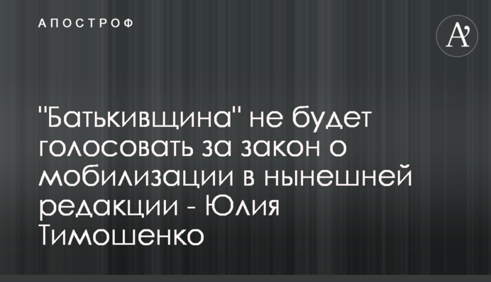 Партия "Батькивщина" не будет голосовать за закон о мобилизации в том виде, который есть сейчас. Как указали в партии, для них неприемлемы статьи об отмене брони для инвалидов третьей группы, педагогов и студентов.