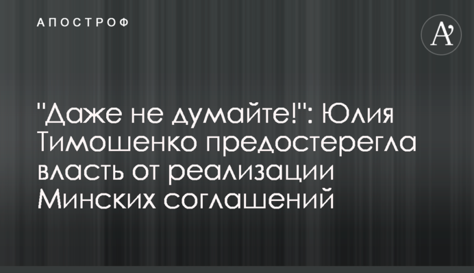 "Очевидно, что Киев снова пытаются принудить к выполнению неприемлемых Минских договоренностей. Скажу на понятном языке – даже не думайте!" – предостерегла Юлия Тимошенко.