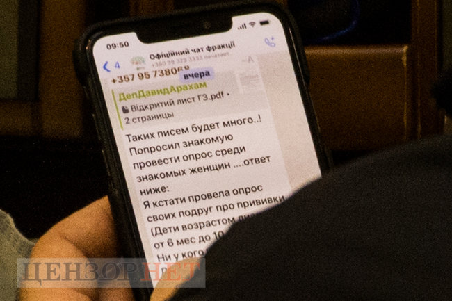 Нардеп во время работы читал фракционный чат. Там обсуждалась тема вакцинации детей. Кто-то из чата написал, что провел опрос среди знакомых. Как выяснилось, никто из них не делал прививок детям. По запросу в детсады и школы они предоставляли "фейковые справки".