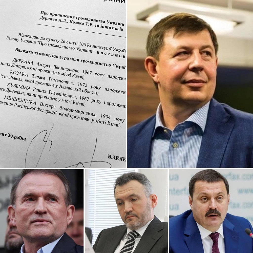 Президент Украины Владимир Зеленский своим указом лишил гражданства кума Путина Медведчука, а также Рената Кузьмина, Тараса Козака и Андрея Деркача.