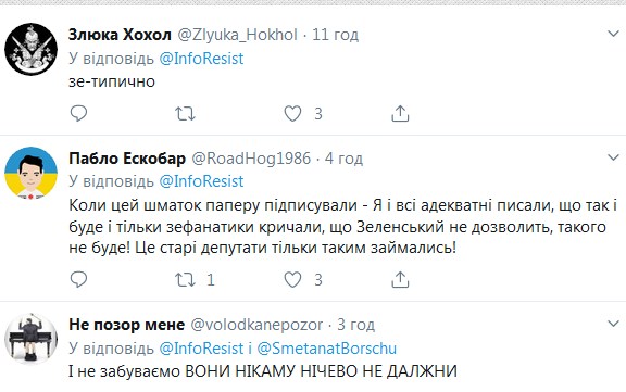 Пользователи соцсетей отметили, что такое поведение представителей президентской политической силы было предсказуемо, учитывая похожие действия со стороны главы Офиса президента Андрея Богдана и других членов Зе-команды.