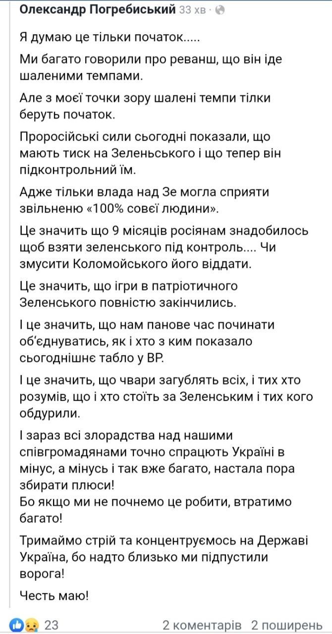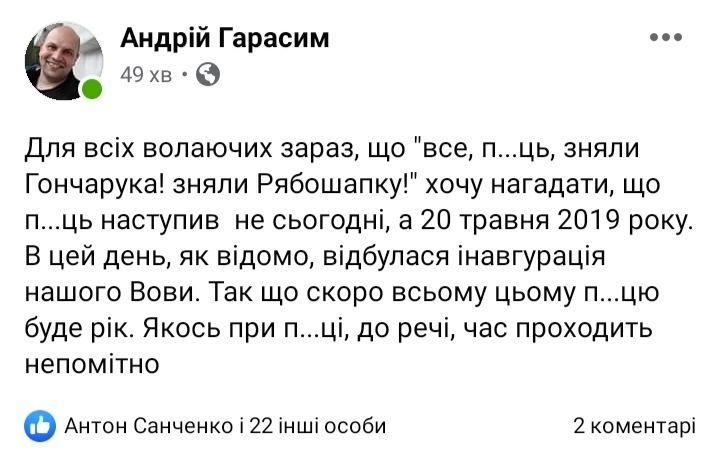 В частности, большинство из комментаторов озвучили неутешительный прогноз о будущем Украины в контексте оставки Рябошапки, предположив, что страну ждут смутные времена.