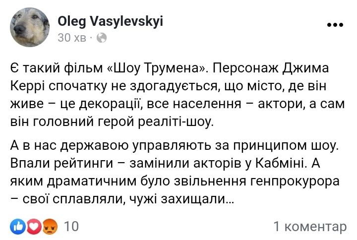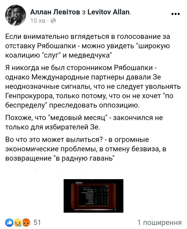 В четверг, 5 марта, Верховная Рада Украины собралась на внеочередное заседание, в ходе которого проголосовала за отставку Руслана Рябошапки с должности Генерального прокурора, что вызвало шквал комментариев в сети.