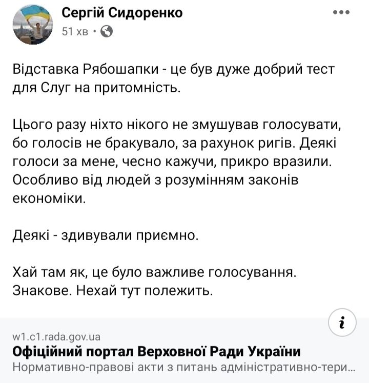 Напомним, что за отставку Рябошапки проголосовали 263 депутата Верховной Рады.