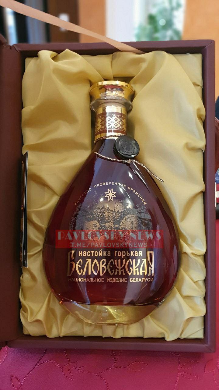 Лукашенко вручил украинскому нардепу набор из эксклюзивной серии "Президент". Его нельзя просто приобрести в магазине. В упаковке шоколад, конфеты и водка. Конфеты изготовлены без консервантов, потому могут храниться всего 2 недели. Упакованы они в тканевую подарочную коробку с гербом Беларуси.