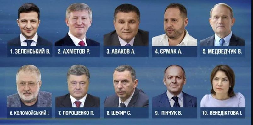 В первую десятку рейтинга вошли ряд политиков и бизнесменов, а именно: Владимир Зеленский, президент Украины, Ринат Ахметов, владелец группы компаний СКМ, Арсен Аваков, глава МВД, Андрей Ермак, глава Офиса президента, Виктор Медведчук, глава политсовета партии "Оппозиционная платформа - За жизнь", Игорь Коломойский, совладелец финансово-промышленной группы "Приват", Виктор Пинчук, бизнесмен, основатель EastOne Group, Ирина Венедиктова, генеральный прокурор.