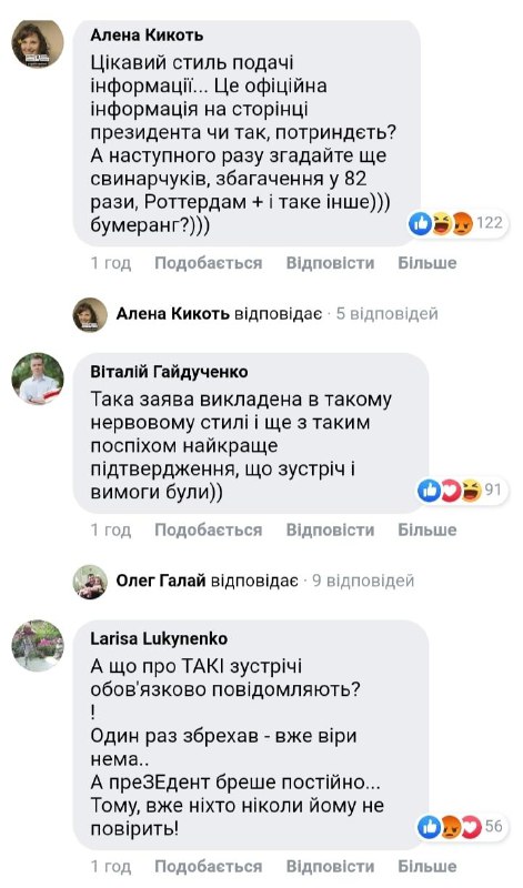 "Просто проверьте - не было встреч в Офисе президента или где-то еще с членами ЦИК, как об этом "сообщил" сайт ZN.UA. Никаких команд, попытки вмешаться или иного подобного общения с членами ЦИК - всего этого не было. Ваши источники вас обманули", - написала пресс-служба президента.