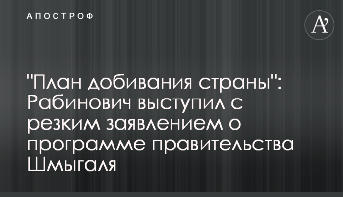 "Офис президента еще не готов признаться во второй своей ошибке относительно выбора главы Кабмина. Слуги народа, конечно, имеют право на ошибку, но не каждый же день! Они уже назначали Гончарука, который критикует нынешнего премьера … А тут еще один промах: программа правительства, которую собирается представить Шмыгаль, – это план по добиванию страны, это план по поклонению Международному валютному фонду, США и кому-то еще" – считает политик.